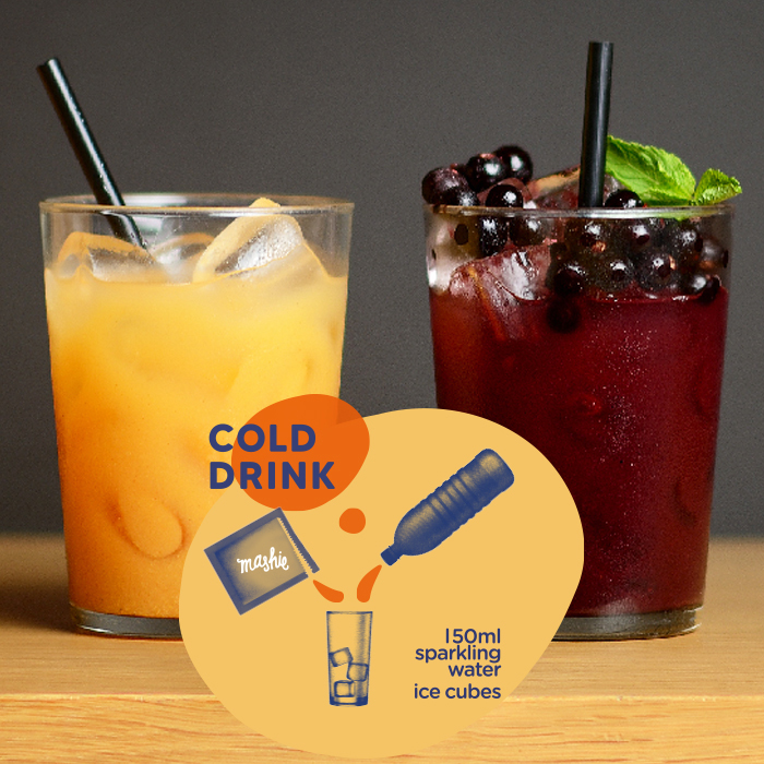 マシーのベリードリンクは、ベリーをすりつぶして丁寧に種や皮を取り除き、味の調整のために砂糖を加えている以外は、ベリーやシナモンエキス、ペパーミントエキスなど自然由来の材料のみで作られています。